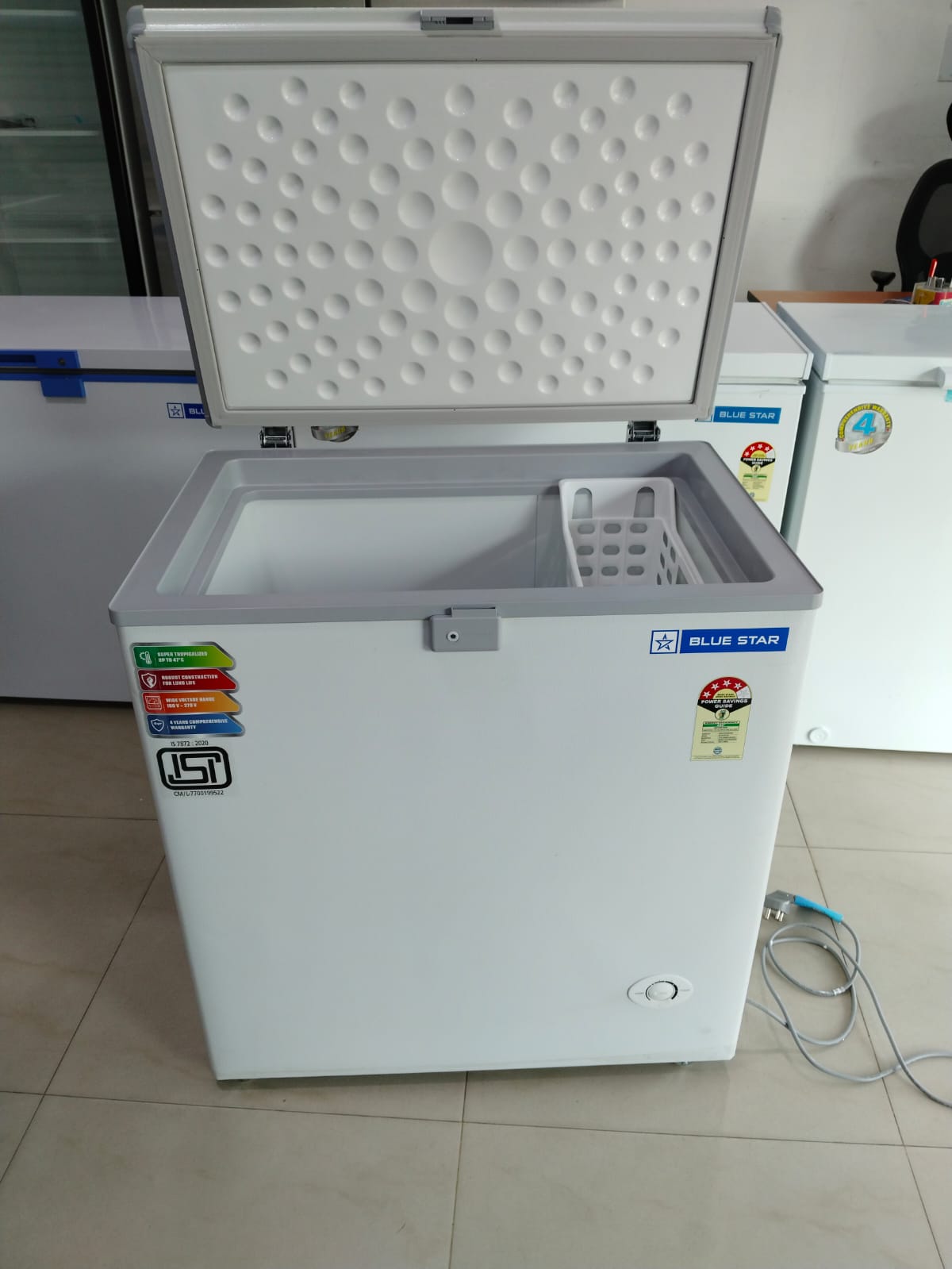 Parameter Value / Range Notes / Source Model / Variant CF3-130NEYW — Type / Style Single door, hard top / chest freezer Capacity 130 litters (gross) Star / Energy Rating 3 Star Dimensions 56.6 cm (W) × 57.5 cm (D) × 84.3 cm (H) Amazon listing: “Product Dimensions. 56.6D x 57.5W x 84.3H CM Temperature / Convertible Range –26 °C to +6 °C Number of Baskets 1 Cooling Power 105 W Stabilizer / Voltage Range 160 V to 260 V (Stabilizer free operation) From a vendor PDF spec sheet: “Stabilizer free operation with a wide voltage range of 160-260 V” Additional / Other Features — The spec sheet mentions stabilizer free, wide voltage range in features If you like, I can try to fetch the official technical datasheet / service manual for CF3-130NEYW