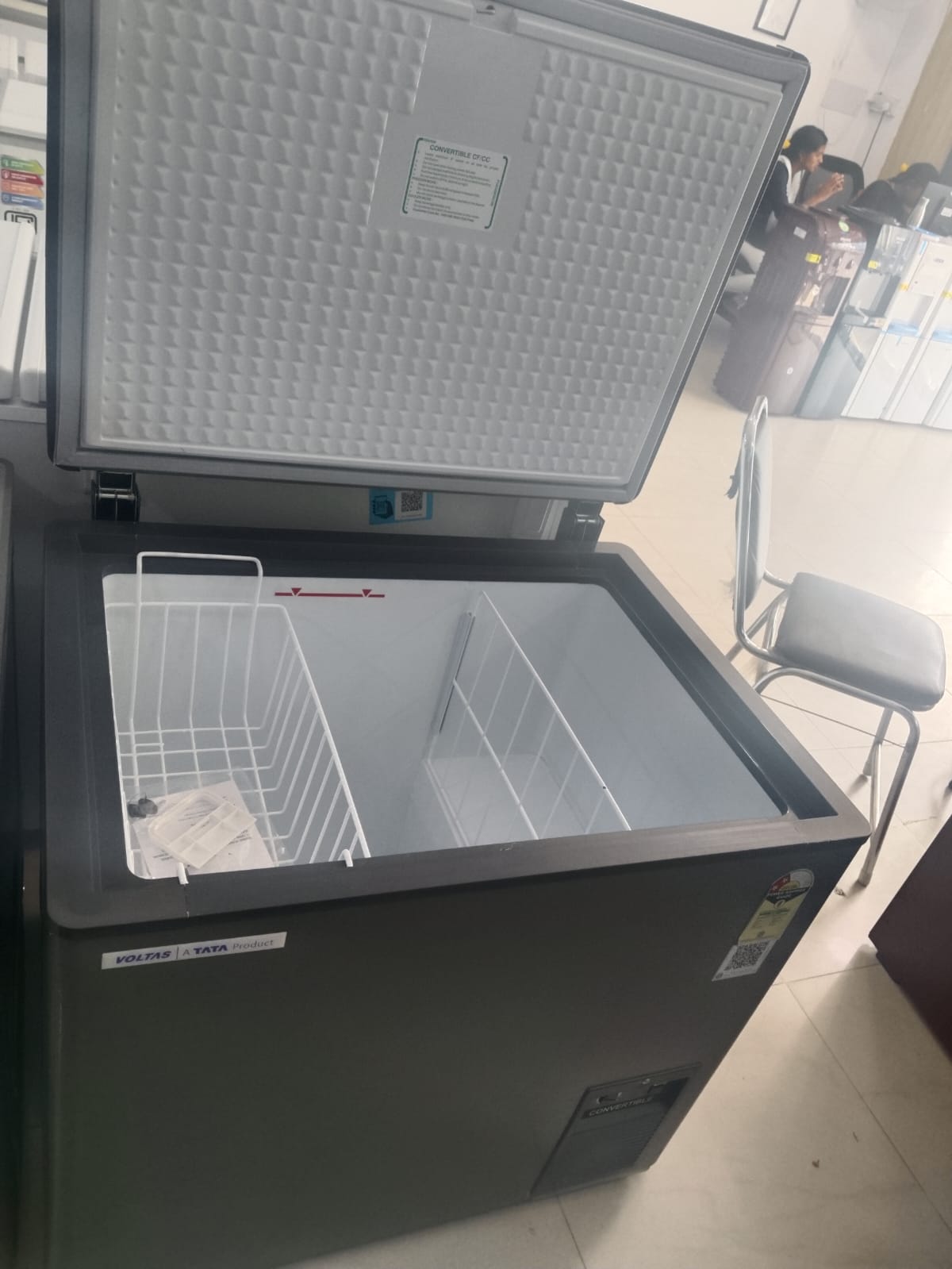 Gross Capacity 205 litters Listing states “205 Littre” capacity. Model / Variants CVF205 SA2-P-PL / SA2-P-AL Common variant codes in listings. Energy Rating 2 Star Many product listings say “2 Star” for the CVF205. Convertible Mode Yes (Freezer ↔ Cooler) Described as “convertible” in listings. Exterior Dimensions (D × W × H) ~ 67 cm (D) × 84 cm (W) × 80 cm (H) From Amazon listing. Alternate Dimensions (other listing) ~ 66.5 cm (D) × 83.4 cm (W) × 83 cm (H) From alternative listing. Voltage / Power Supply 230 V AC Standard for Indian appliances. Inner / Body Construction Stucco aluminum inner liner; UV-grade plastic outer body Described in listing. Hinges / Lid / Mechanism Spring-loaded hinges, lockable top lid (hard top) From product description. Mobility / Feet Castor wheels / rollers Indicated in listing features. Usage / Operation Ready to use Voltas Freezer Dealers Rathinapuri Coimbatore | Voltas Freezer Dealers Sanganur Coimbatore | Voltas Freezer Dealers Ramnagar Coimbatore | Voltas Freezer Dealers Tatabad Coimbatore | Voltas Freezer Dealers PN Palayam Coimbatore | Voltas Freezer Dealers Vadavalli Coimbatore | Voltas Freezer Dealers Kuniyamuthur Coimbatore | Voltas Freezer Dealers Ondipudur Coimbatore | Voltas Freezer Dealers Hope College Coimbatore | Voltas Freezer Dealers Sanganoor Coimbatore | Voltas Freezer Dealers Ukkadam Coimbatore | Voltas Freezer Dealers Selvapuram Coimbatore | Voltas Freezer Dealers Town Hall Coimbatore | Voltas Freezer Dealers Avarampalayam Coimbatore | Voltas Freezer Dealers Gandhi Ma Nagar Coimbatore | Voltas Freezer Dealers PN Pudur Coimbatore | Voltas Freezer Dealers Puliyakulam Coimbatore | Voltas Freezer Dealers Ramanathapuram Coimbatore | Voltas Freezer Dealers Masakkalipalayam Coimbatore | Voltas Freezer Dealers Sowripalayam Coimbatore | Voltas Freezer Dealers Edayarpalayam Coimbatore | Voltas Freezer Dealers Velandipalayam Coimbatore